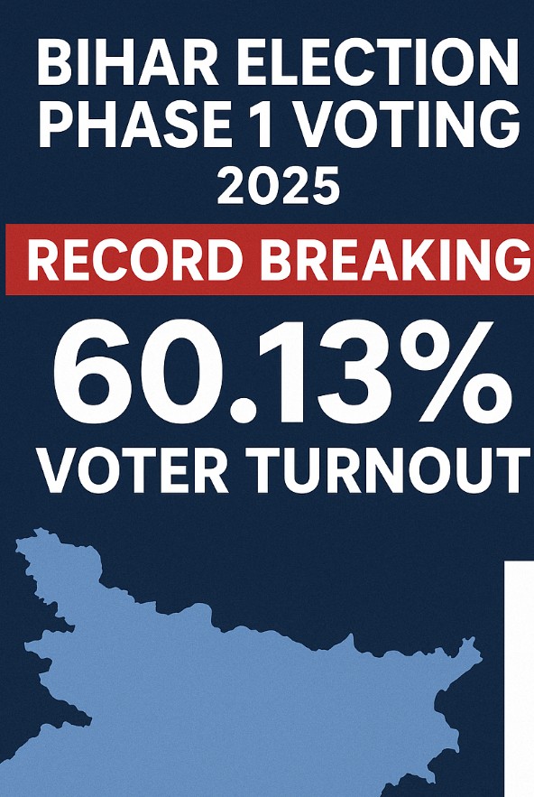 पटना। बिहार विधानसभा चुनाव 2025 के पहले चरण का मतदान गुरुवार (6 नवंबर) को शांतिपूर्ण ढंग से संपन्न हो गया। चुनाव आयोग के अनुसार, शाम 5 बजे तक 60.13 फीसदी वोटिंग दर्ज की गई, जो पिछले चुनावों के मुकाबले ज्यादा रही। 2020 में कुल 58.7% और 2015 में 56.9% मतदान हुआ था।