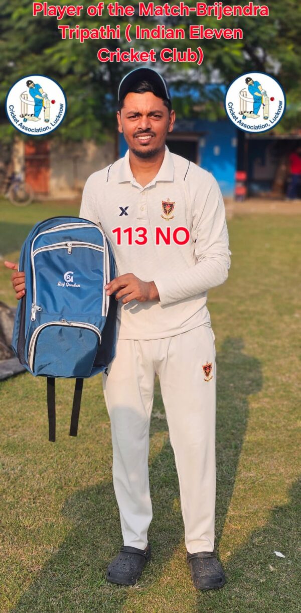 सलामी बल्लेबाज कप्तान बृजेंद्र त्रिपाठी ने 113 गेंदों पर 13 चौके व 20 छक्के से नाबाद 113 रन बनाते हुए शतक पूरा किया। उनका साथ देते हुए शिवांश यादव ने 52 गेंदों पर 7 चौके व 1 छक्के से 62 रन की नाबाद अर्धशतकीय पारी खेली।