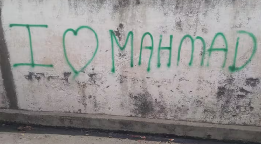 अलीगढ़ (उत्तर प्रदेश)। थाना लोधा के बुलाकगढ़ी गांव में शनिवार की सुबह ग्रामीणों के बीच तनाव का माहौल पैदा हो गया, जब अराजक तत्वों ने इलाके के मंदिर की दीवारों पर “आई लव मोहम्मद” का स्लोगन लिख दिया। घटना की जानकारी मिलते ही पुलिस के उच्च अधिकारी समेत थानाध्यक्ष भारी फोर्स के साथ मौके पर पहुंचे।