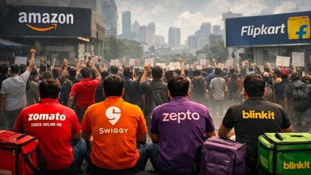 नई दिल्ली: न्यू ईयर ईव से ठीक पहले आज यानी 31 दिसंबर को देशभर में गिग वर्कर्स स्ट्राइक का ऐलान किया गया है। इस हड़ताल में Swiggy, Zomato, Amazon, Flipkart समेत सभी ऐप आधारित डिलीवरी प्लेटफॉर्म्स से जुड़े गिग वर्कर्स शामिल हैं। ऐसे में नए साल की पार्टी के लिए खाना ऑर्डर करना और ऑनलाइन डिलीवरी सेवाएं प्रभावित हो सकती हैं। गिग वर्कर्स उचित वेतन, सुरक्षा, तय काम के घंटे और बेहतर कार्य स्थितियों की मांग को लेकर हड़ताल पर हैं।