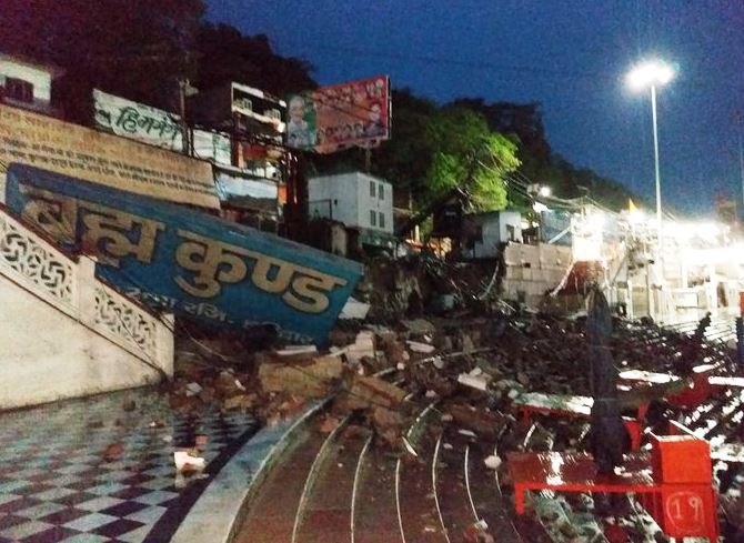 हरिद्वार की एसडीएम कुसुम चौहान के मुताबिक बिजली गिरने से गिरी दीवार के बाद हर की पौड़ी पर मलवा हटाने का काम जारी है।
