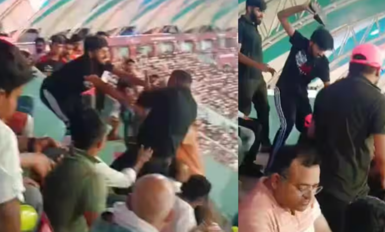 IPL 2026 के दौरान लखनऊ के इकाना स्टेडियम में खेले गए मुकाबले में जहां मैदान पर क्रिकेट जारी था, वहीं स्टैंड्स में अचानक हिंसा का नजारा देखने को मिला। मैच के बीच दो दर्शकों के बीच शुरू हुआ विवाद देखते ही देखते हाथापाई में बदल गया।