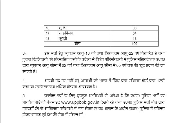 बोर्ड नोटिस के मुताबिक, ये कॉन्स्टेबल भर्ती खेल कोटा के तहत की जानी है। कुशल खिलाड़ियों की भर्ती के लिए ओपन टेंडर हेतु सक्षम संस्थाओं से निविदाएं आमंत्रित की गई हैं, अपडेट रहने के लिए भर्ती बोर्ड की वेबसाइट http://uppbpb.gov.in पर विजिट कर सकते हैं।