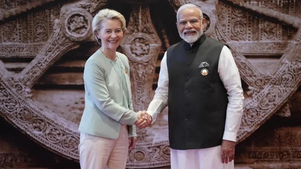 नई दिल्ली। भारत और यूरोपीय संघ (EU) के बीच प्रस्तावित ऐतिहासिक व्यापार समझौते (India-EU Trade Deal) को अंतिम रूप देने की दिशा में बड़ा कदम उठता दिख रहा है। भारत दौरे पर पहुंचीं यूरोपीय आयोग की अध्यक्ष उर्सुला वॉन डेर लेयेन ने रविवार को कहा कि भारत और यूरोप ने रणनीतिक साझेदारी, संवाद और खुलेपन का स्पष्ट विकल्प चुना है। उन्होंने इस प्रस्तावित समझौते को दुनिया के लिए उम्मीद की किरण बताया।