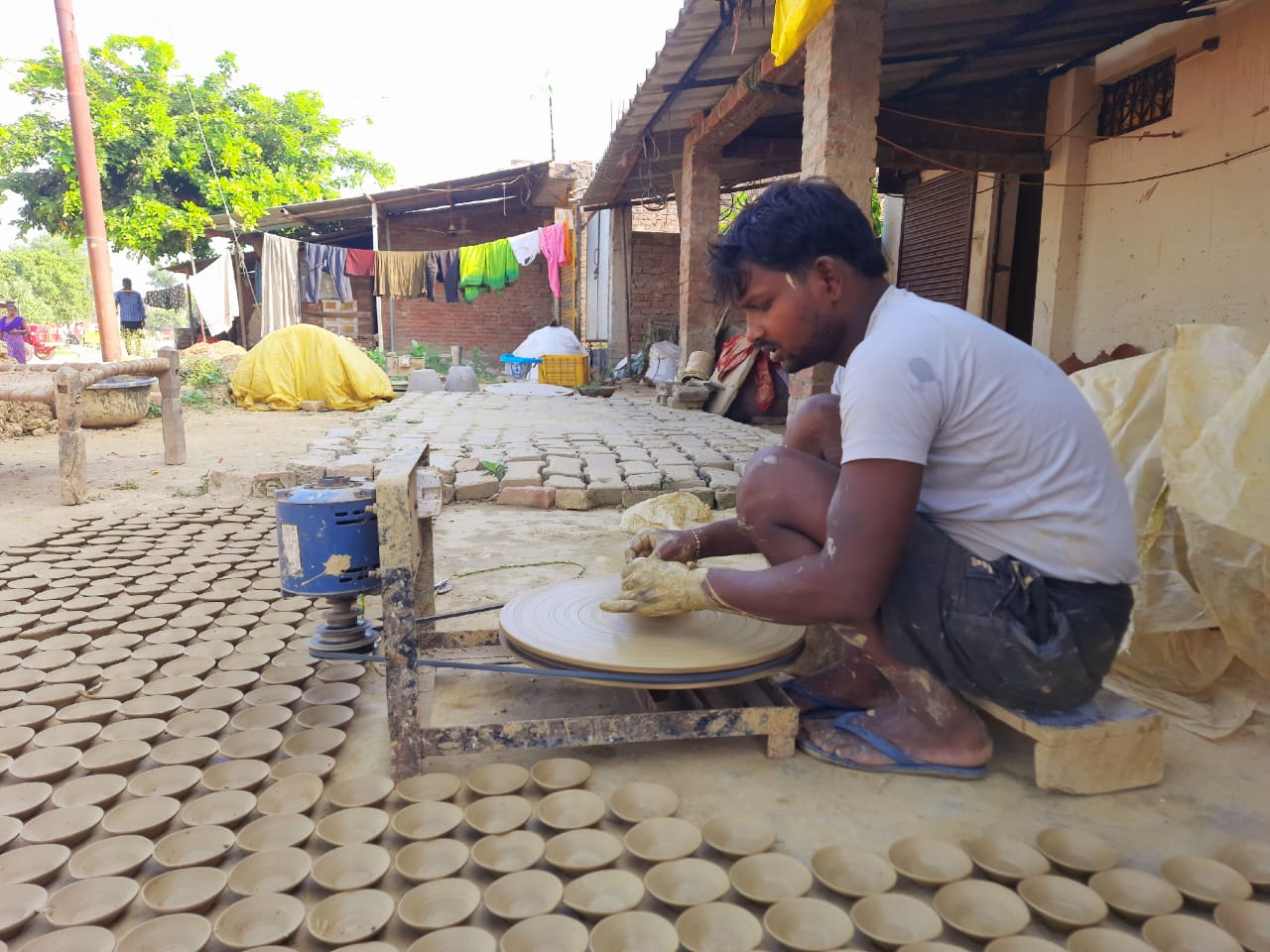 कुम्हार को कुम्हार के पहिये पर आकृति बनाते हुए देखना एक जादुई नजारा है। अयोध्या नगर निगम के जयसिंहपुर वार्ड में कुम्हारों की बस्ती है। यहां के कुम्हारों के साथ आसपास के अन्य गांवों के कुम्हार दीपोत्सव के लिए दीयों को कुम्हारी चक्को पर गढ़ रहे हैं लेकिन इन्हें अभी तक दीयोंओ की आपूर्ति का कोई सरकारी आदेश नहीं मिला है। पिछले वर्ष भी बिचौलियों के माध्यम से फुटकर में कुछ दीयों की खरीद इनसे हुई थी।