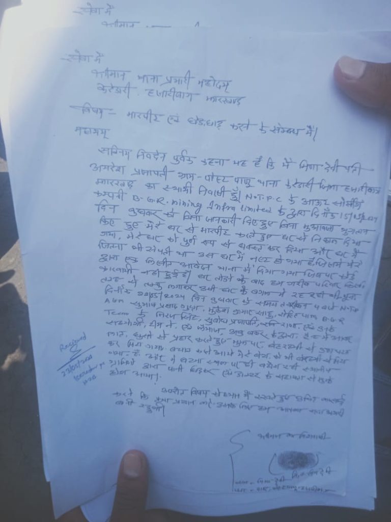 एनटीपीसी के एजीएम सुभाष प्रसाद गुप्ता ने पीड़ित परिवार को “जबरन वसूली करने वाला” बताया, एनटीपीसी, बीजीआर इंफ्रा और स्थानीय प्रशासन ने चुप्पी साध रखी है एनटीपीसी लिमिटेड एक बार फिर खबरों में है, हालांकि इस बार भी अच्छे कारणों से नहीं। एनटीपीसी लिमिटेड और उसका एमडीओ – बीजीआर इंफ्रा एंड माइनिंग प्राइवेट लिमिटेड, झारखंड के हजारीबाग जिले के केरेडारी गांव से कोयले का उत्खनन कर रहा है।
