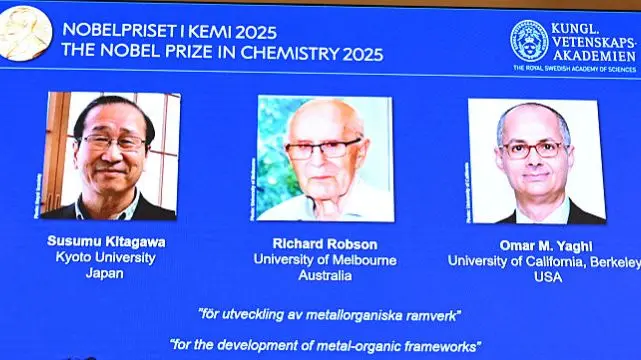 एकेडमी ने कहा:“सुसुमु कितागावा, रिचर्ड रॉबसन और उमर एम. याघी को एक नई तरह की आणविक संरचना के विकास के लिए 2025 का रसायन विज्ञान का नोबेल पुरस्कार दिया जा रहा है। रिचर्ड रॉबसन ने 1989 में परमाणुओं के गुणों का नए तरीके से उपयोग करने का परीक्षण किया था।”
