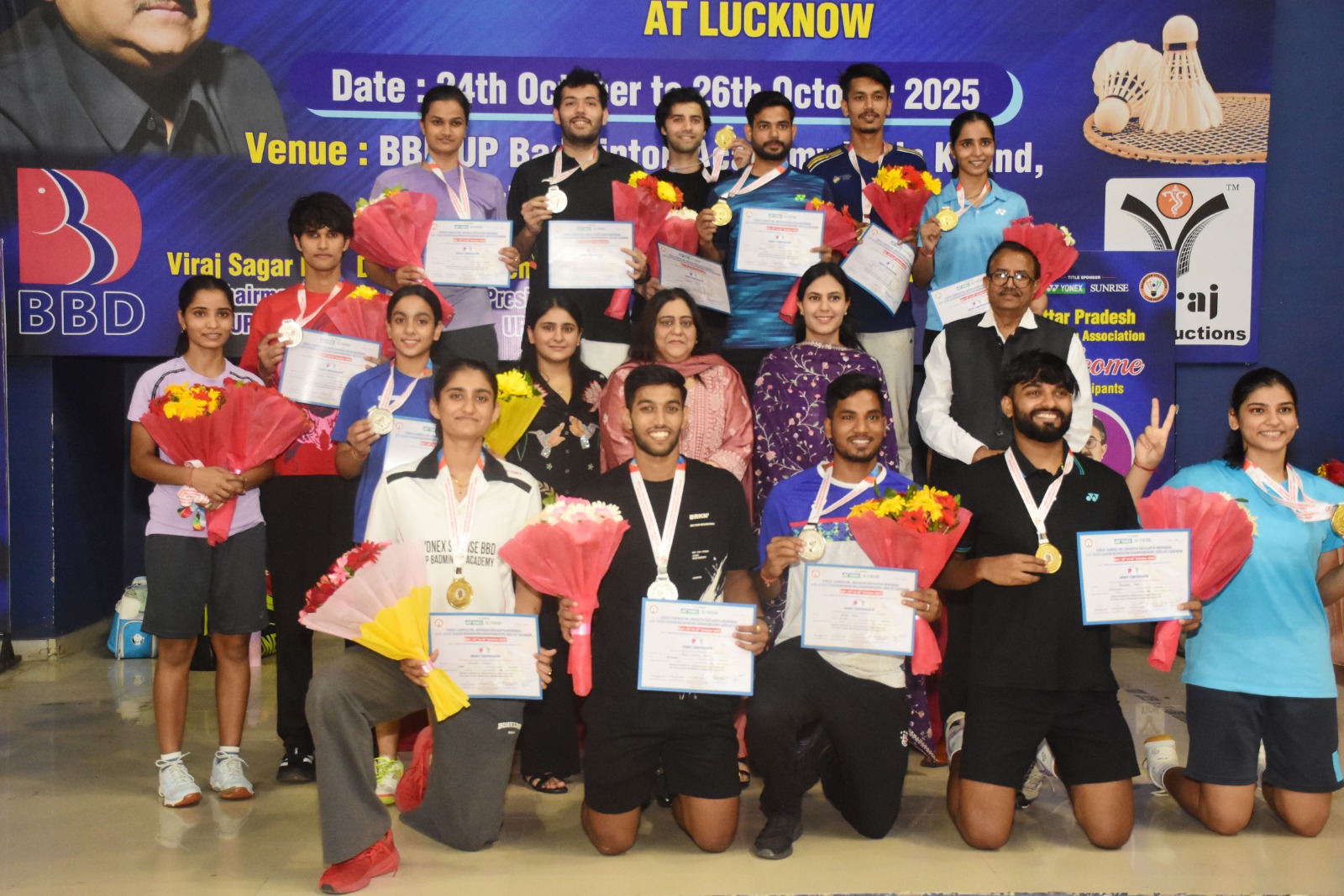 बीबीडी यूपी बैडमिंटन अकादमी गोमती नगर में आयोजित पांच लाख रुपए की ईनामी राशि वाली चैंपियनशिप में मिश्रित युगल में आगरा के दक्ष गौतम व यूपी बैडमिंटन अकादमी की सोनाली सिंह, महिला युगल में अलीगढ़ की रमा सिंह व यूपी बैडमिंटन अकादमी की सोनाली सिंह चैंपियन बने।