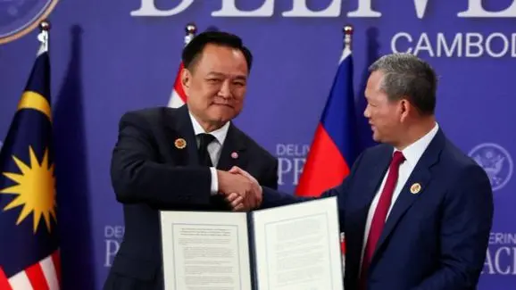 बीते कुछ दिनों से जारी संघर्ष के बाद थाईलैंड और कंबोडिया के बीच एक बार फिर युद्धविराम (Ceasefire) पर सहमति बन गई है। समाचार एजेंसी रॉयटर्स के मुताबिक दोनों देशों ने औपचारिक रूप से सीज़फायर समझौते पर हस्ताक्षर कर दिए हैं। इस समझौते की पुष्टि कंबोडिया के रक्षा मंत्रालय ने की है।