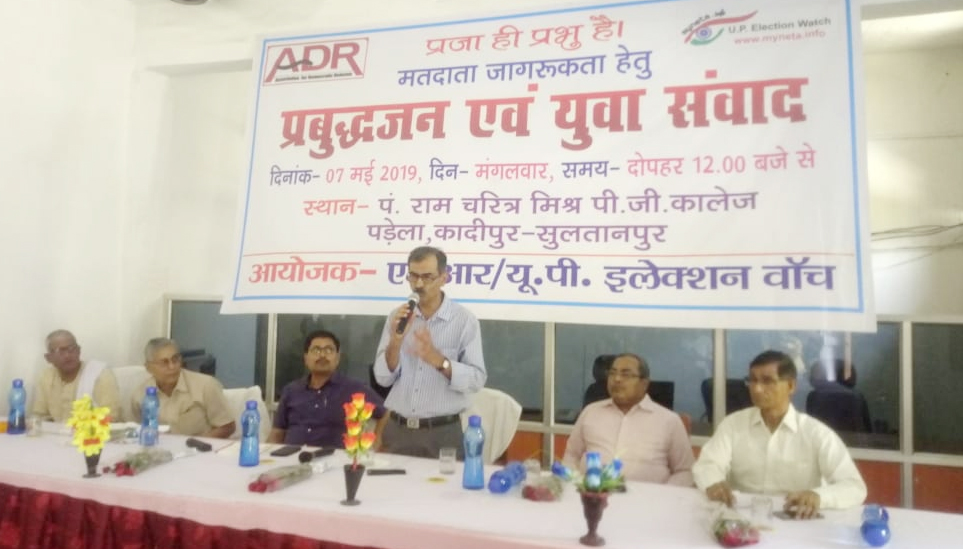 लखनऊ। सुलतानपुर में एडीआर किसी राजनीतिक दल का प्रतिनिधित्व नहीं करता। यह एक चुनाव सुधारों को लेकर कार्य करने वाली संस्था है। ये बातें एसोसिएशन फार डेमोक्रेटिक रिफार्म के नेशनल हेड रिटायर्ड मेजर जनरल अनिल वर्मा ने मंगलवार को कादीपुर के पं. राम चरित्र मिश्र महाविद्यालय के सभागार में आयोजित प्रबुद्ध जन एवं युवा संवाद कार्यक्रम में बतौर मुख्य अतिथि संबोधित करते हुए कही।