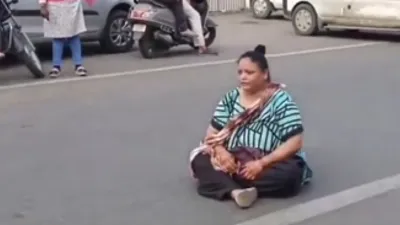 ₹20 में 6 पानीपुरी की जगह खिलाए चार गोलगप्पे, विरोध में सड़क पर बैठी महिला।
