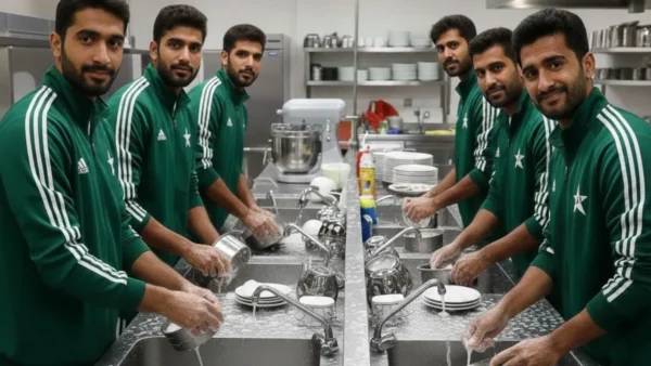 पाकिस्तानी टीम ने होटल में धोए बर्तन. (फोटो- AI generated)